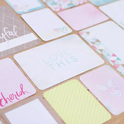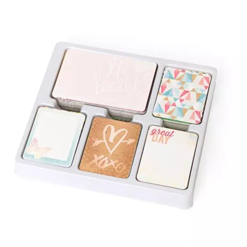 Шикарный набор из 616 карточек со скругленными уголками для оформления альбомов. Станут идеальным дополнением к страничкам и подложками для фотографий. В наборе 500 карточек для журналинга (размер 7,6х10 см, каждого дизайна по 10 штук), 40 для записей (размер 7,6х10 см, каждого дизайна по 4 штуки), 8 для первой страницы (4 размером 10х15 см и 4 карточки — 7,6х10 см), 8 для последней страницы (4 размером 10х15 см и 4 карточки — 7,6х10 см), 60 с надписями (размер 10х15 см, каждого дизайна по 3 штуки). Карточки упакованы в красивую коробочку на магнитной застежке. Разработано совместно с Project Life