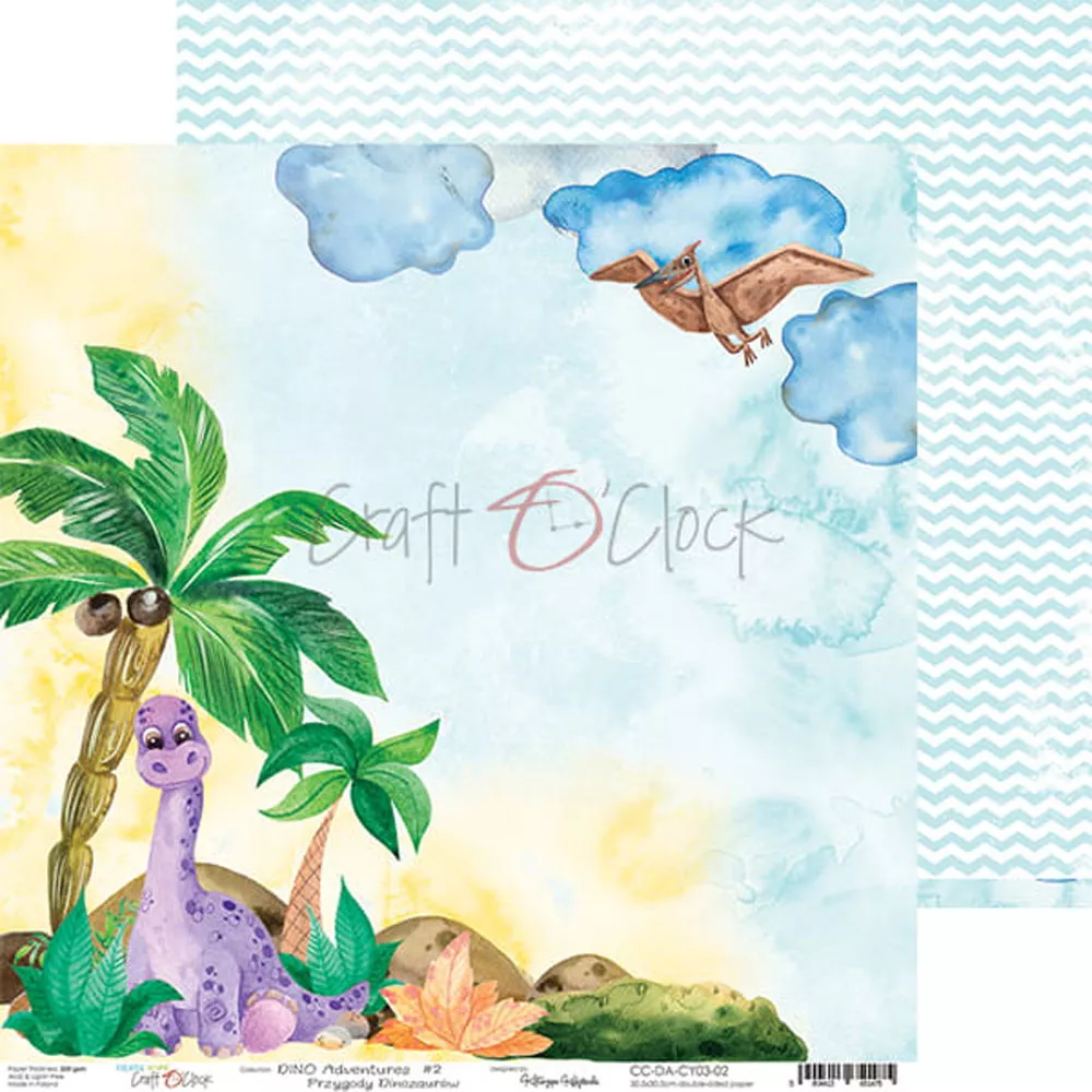 Создавайте уникальные истории с Бумага 30х30 см "Dino adventures 02" (CraftO'clock). Яркие цвета, интересные узоры и различные текстуры — все, что нужно для ваших творческих экспериментов.