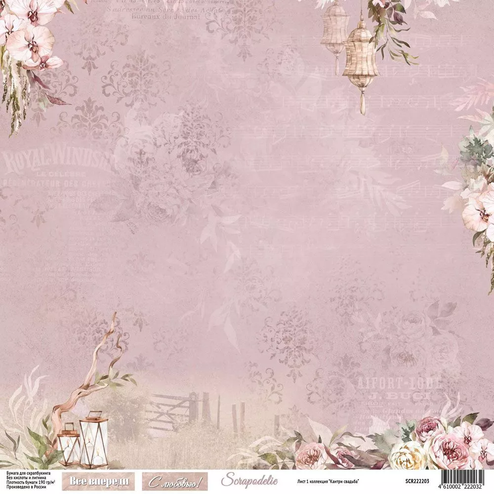 Бумага 30х30 см "Кантри свадьба. Лист 01" (Scrapodelie)