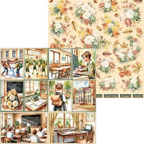 Бумага 30х30 см "Первый звонок. Карточки" (Scrapodelie)