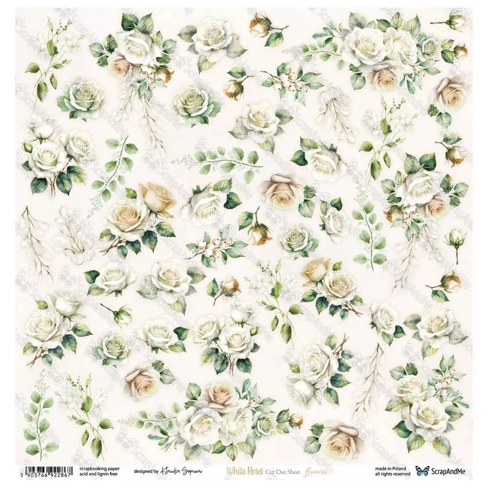 Создавайте уникальные истории с Бумага 30х30 см "White Roses. Flowers" (ScrapAndMe). Яркие цвета, интересные узоры и различные текстуры — все, что нужно для ваших творческих экспериментов.