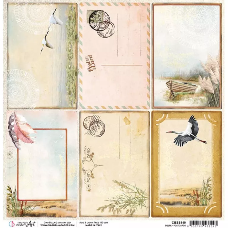 Создавайте уникальные истории с Бумага "Delta. Postcards" (Ciao bella). Яркие цвета, интересные узоры и различные текстуры — все, что нужно для ваших творческих экспериментов.