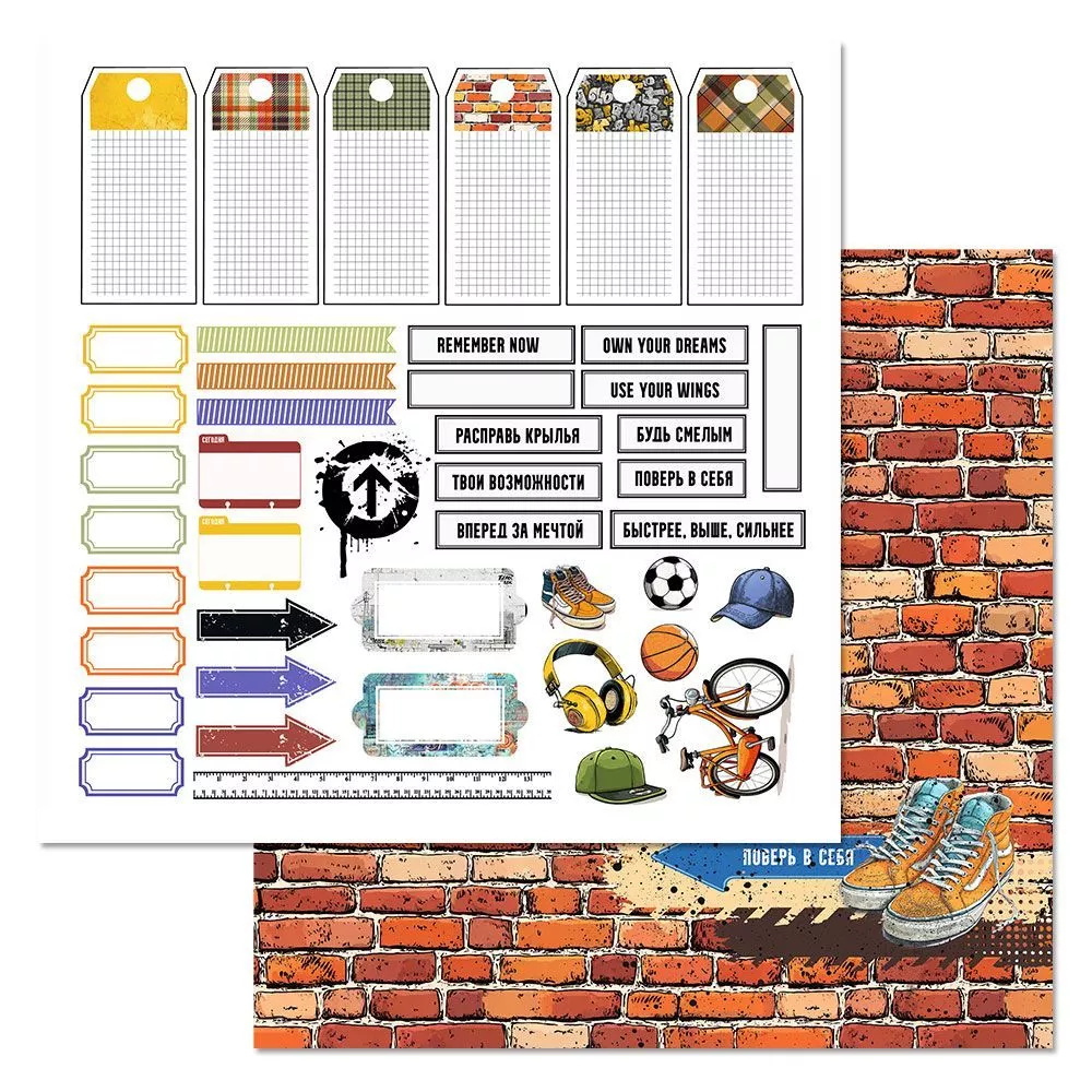 Создавайте уникальные истории с Бумага "Ребята с нашего двора. Ярлыки" (ScrapMania). Яркие цвета, интересные узоры и различные текстуры — все, что нужно для ваших творческих экспериментов.