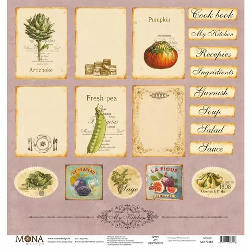 Бумага "Винтажные рецепты. Карточки с рецептами" (MonaDesign)