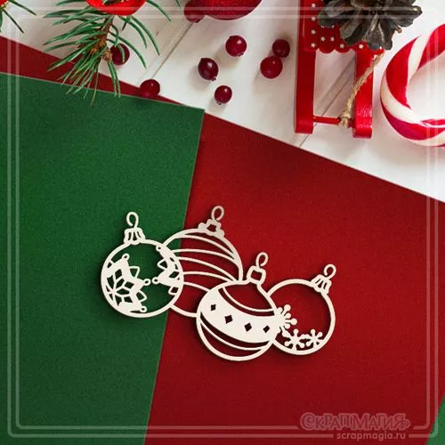 Чипборд "Елочные шарики", 7,6х4,6 см (СкрапМагия)