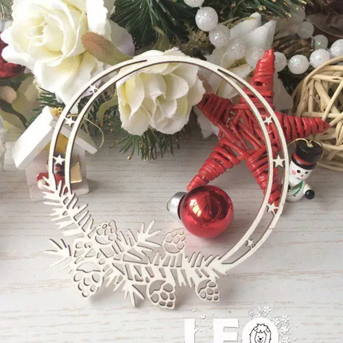 Чипборд "Новогодний венок с шишечками", 8 см (LeoMammy)