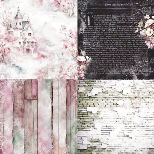 В наборе 6 двусторонних листов разного дизайна и 3 двусторонних листа с элементами для вырезания. На обратной стороне обложки расположены 4 сюжетные карточки. Плотность 250 гр/м2. Необыкновенной красоты коллекция в оттенках волшебства и со сказочным настроением