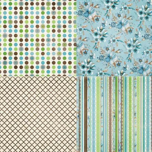 В наборе 36 односторонних листов, каждого дизайна по 3 листа. Плотность около 190 гр/м2. Коллекция, как свежее прохладное утро августа. Бирюзовое небо бережно укрывает еще пока яркую зеленую траву, отражаясь в крупных цвета голубого цвета. Геометричные узоры, дамаск и восточная плитка придают загадочность и особый шарм бумаге