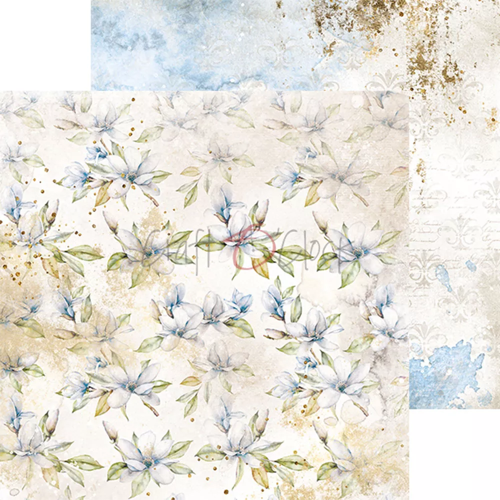 В наборе 24 двусторонних листов (по 4 листа каждого дизайна). Плотность 250 гр/м2. Приятным бонусом станет обратная сторона обложки, которую также можно использовать в работе. Винтажное небо, усеянное мечтательной дымкой воспоминаний, цветами и нежной гладью синего цвета. Идеально, вдохновляюще, изысканно