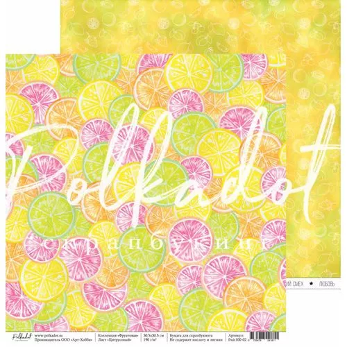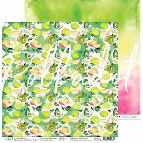 Создавайте уникальные истории с Набор бумаги 20х20 см "Фруктовая коллекция", 6 листов (Polkadot). Яркие цвета, интересные узоры и различные текстуры — все, что нужно для ваших творческих экспериментов.