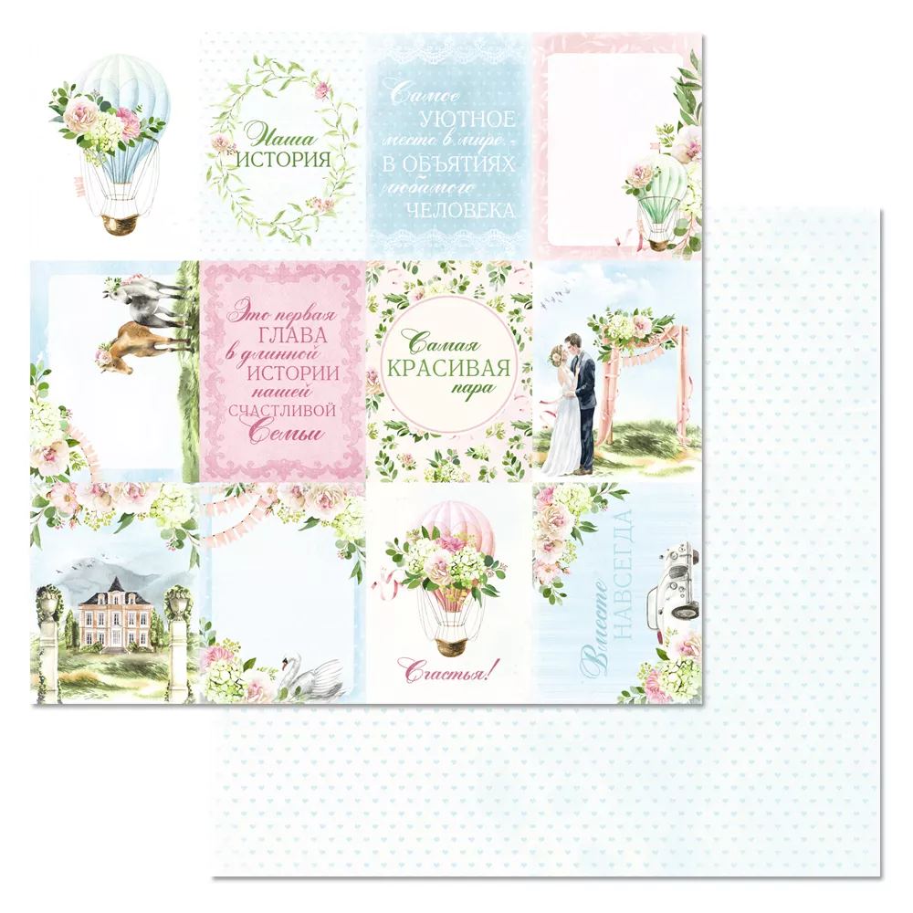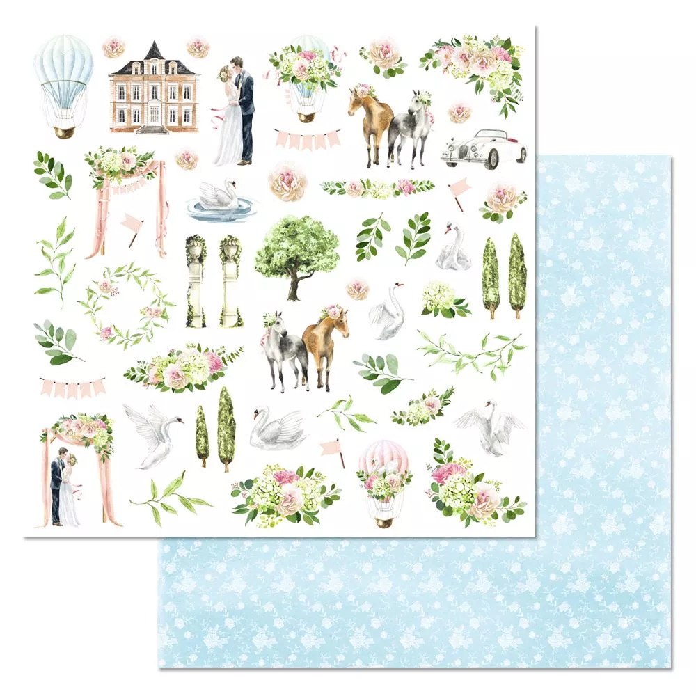 В наборе 12 листов разного дизайна, в том числе 3 листа с картинками для вырезания. Плотность 180 гр/м2. Легкая, воздушная и самая-самая нежная свадебная коллекция. Летний ветер вплетет в ажурное кружево трогательные чувства и любовь. Нежность закружит в вальсе тысячи цветов под торжественные звуки марша Мендельсона. И, обнимая свое счастье, кажется будто мир существует только для вас двоих