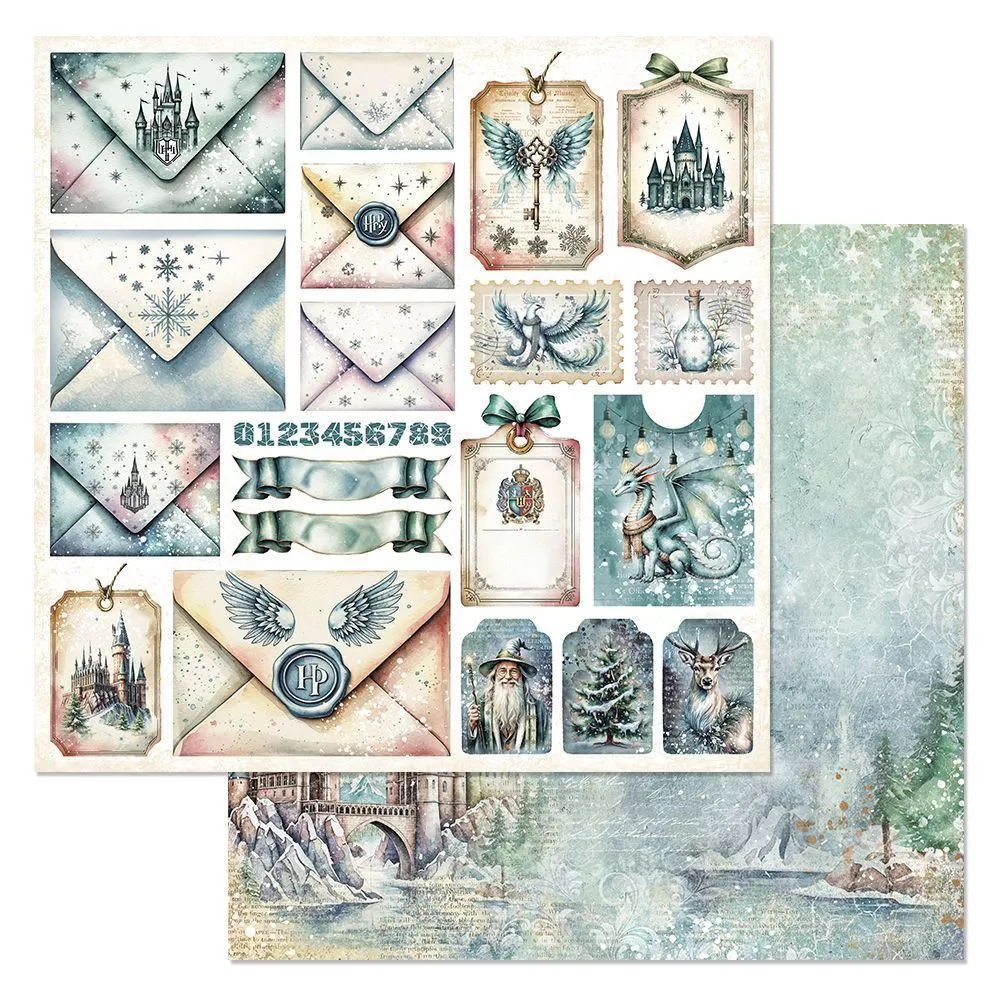 В наборе 6 двусторонних листов разного дизайна и 6 двусторонних листа с карточками и картинками для вырезания. Плотность 180 гр/м2. Погружаемся в мир магии и чудес, вдохновленный вселенной Гарри Поттера. Каждый лист бумаги в этом наборе — это портал в Хогвартс, где оживают сказочные истории и волшебные приключения. Откройте окно в мир, где оживают мечты и исполняются желания. Изображения волшебных лесов, сказочных замков и знакомые персонажи создают атмосферу таинства и чуда. С его помощью вы сможете передать всю магию и волшебство Рождества своим близким и друзьям