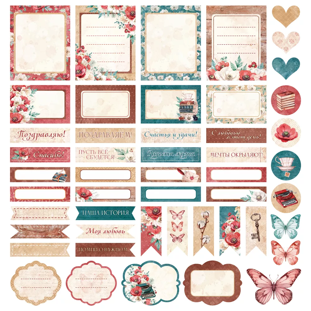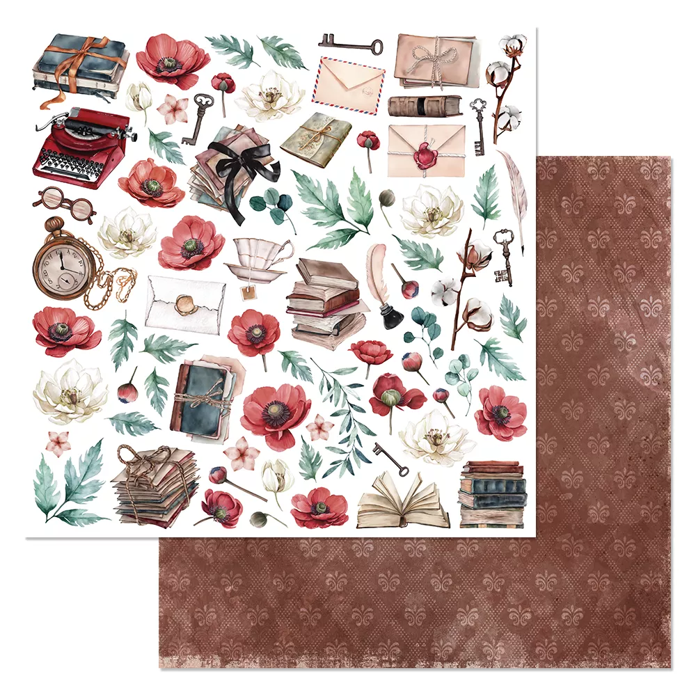 В наборе 9 двусторонних листов разного дизайна, 1 двусторонний лист с карточками и 2 двусторонних листа с картинками для вырезания. Плотность 180 гр/м2. Глубокая, но при этом очень спокойная коллекция, наполненная букетами цветов и книжными настроениями. Отлично подойдет для создания винтажных альбомов, личных дневников и душевных страничек
