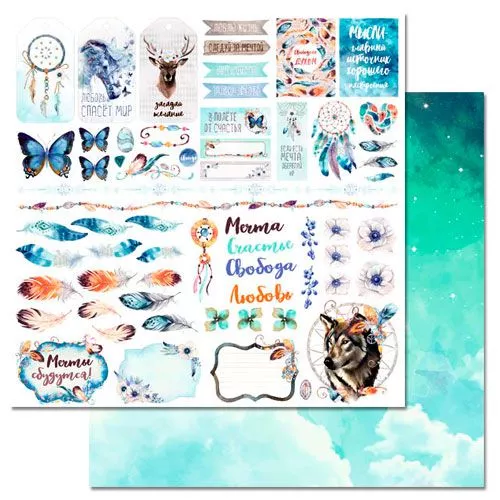 В наборе 6 двусторонних листов различного дизайна, плотность 180 гр/м2. Шикарный этно-набор с акварельными дизайнами, волками, мандалами, перышками. Набор подойдет как для альбома, так и для открыток! Уникальные дизайны подобраны специально для Вашего вдохновения!