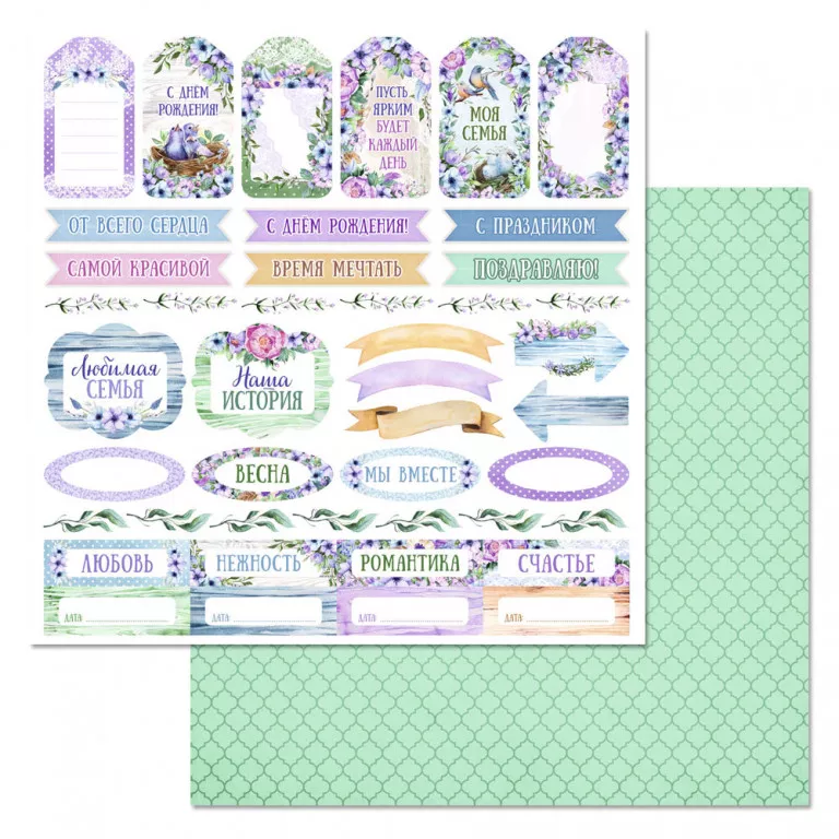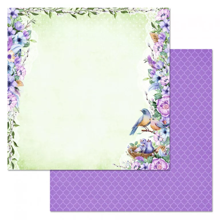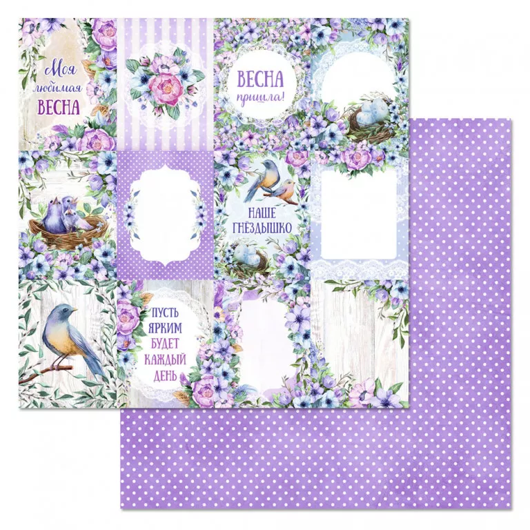 В наборе 12 двусторонних листов разного дизайна, в том числе 2 листа с картинками для вырезания. На обратной стороне обложки приятный бонус - карточки, теги и картинки для вырезания. Плотность 180 гр/м2. Нежная весна распахнет ваше сердце для любви, счастья и вдохновения. Самые трогательные моменты жизни будут бережно храниться под лепестками прекрасных цветов в окружении хрупкого сиреневого рассвета. Тонкая, душевная коллекция о главных семейных ценностях и красоте весеннего наслаждения