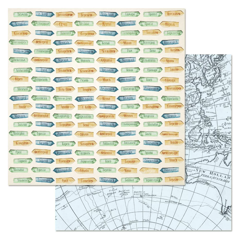 Набор бумаги 30,5х30,5 см "Путеводитель", 12 листов (ScrapMania)