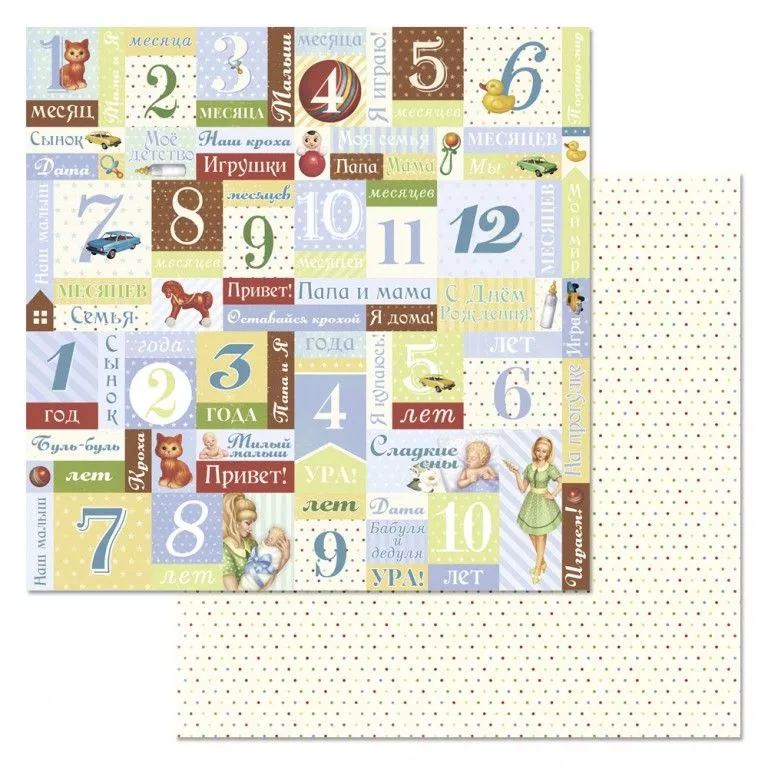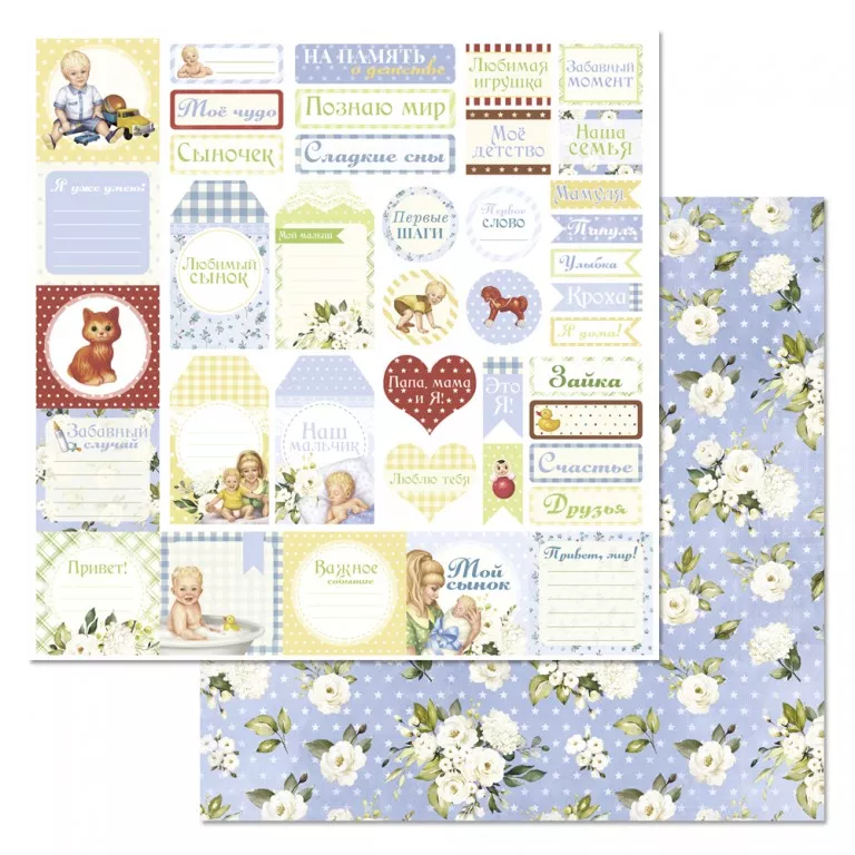 В наборе 12 двусторонних листов различного дизайна, в том числе 1 лист с картинками для вырезания и 1 лист с карточками. Плотность 180 гр/м2. Что за проказник, что за шалун? Бегает, прыгает наш шалунишка! Самые первые моменты, первое знакомство мамы и малыша - это бесценно. Позвольте себе окунуться в мир детства с нашей коллекцией про маленького озорника. История про то, как мир детства наполнен счастьем, смехом и нежными объятиями. Сохраните воспоминания о детстве красиво!