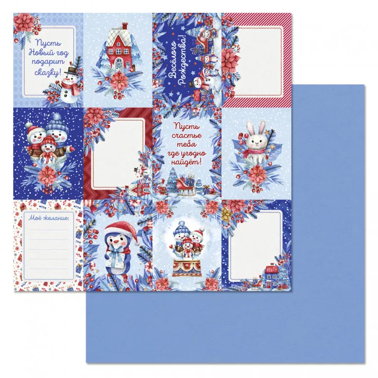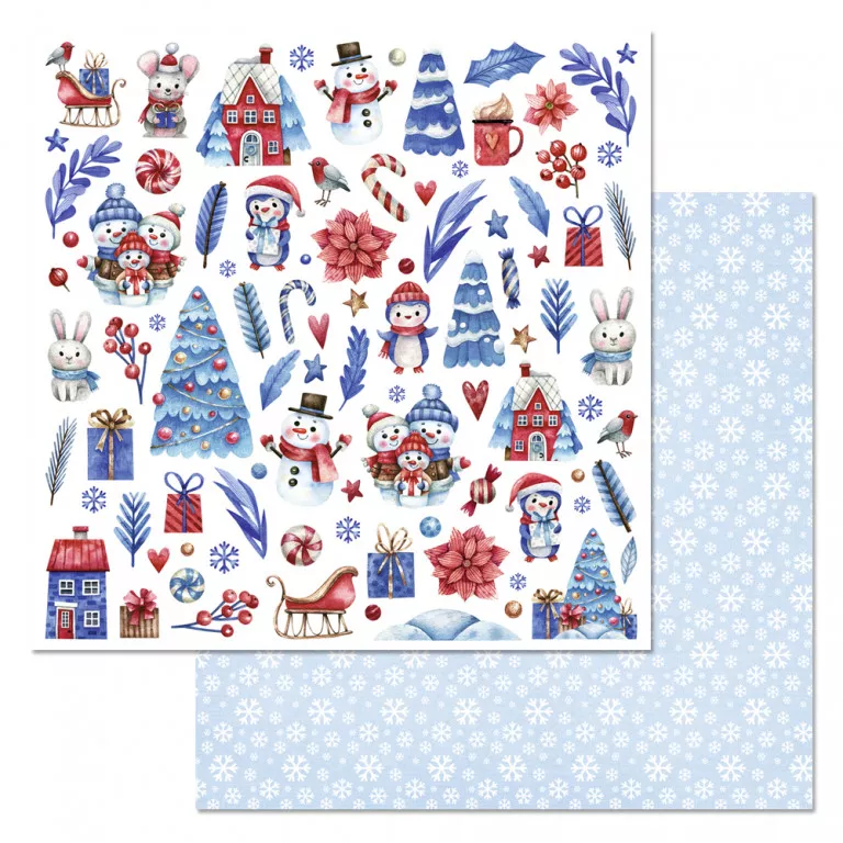 Набор бумаги 30,5х30,5 см "Снеговички", 12 листов (ScrapMania)