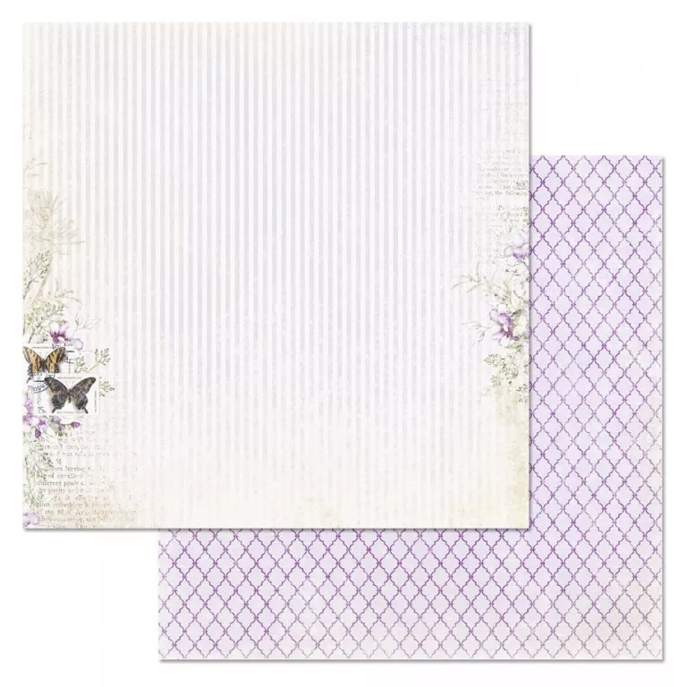 В наборе 12 двусторонних листов разного дизайна, в том числе 3 листа с картинками для вырезания. Плотность 180 гр/м2. Легкой дымкой рассветного тумана, чуть звеня воздушным умиротворением, на бумагу опустилась цветочная вуаль. Нежностью сиреневых цветов она окутала мысли и мягкой зеленью легла в основу идеи коллекции. Прикоснуться к бесконечности воздуха и ощутить счастье на кончиках пальцев - это бесценно...