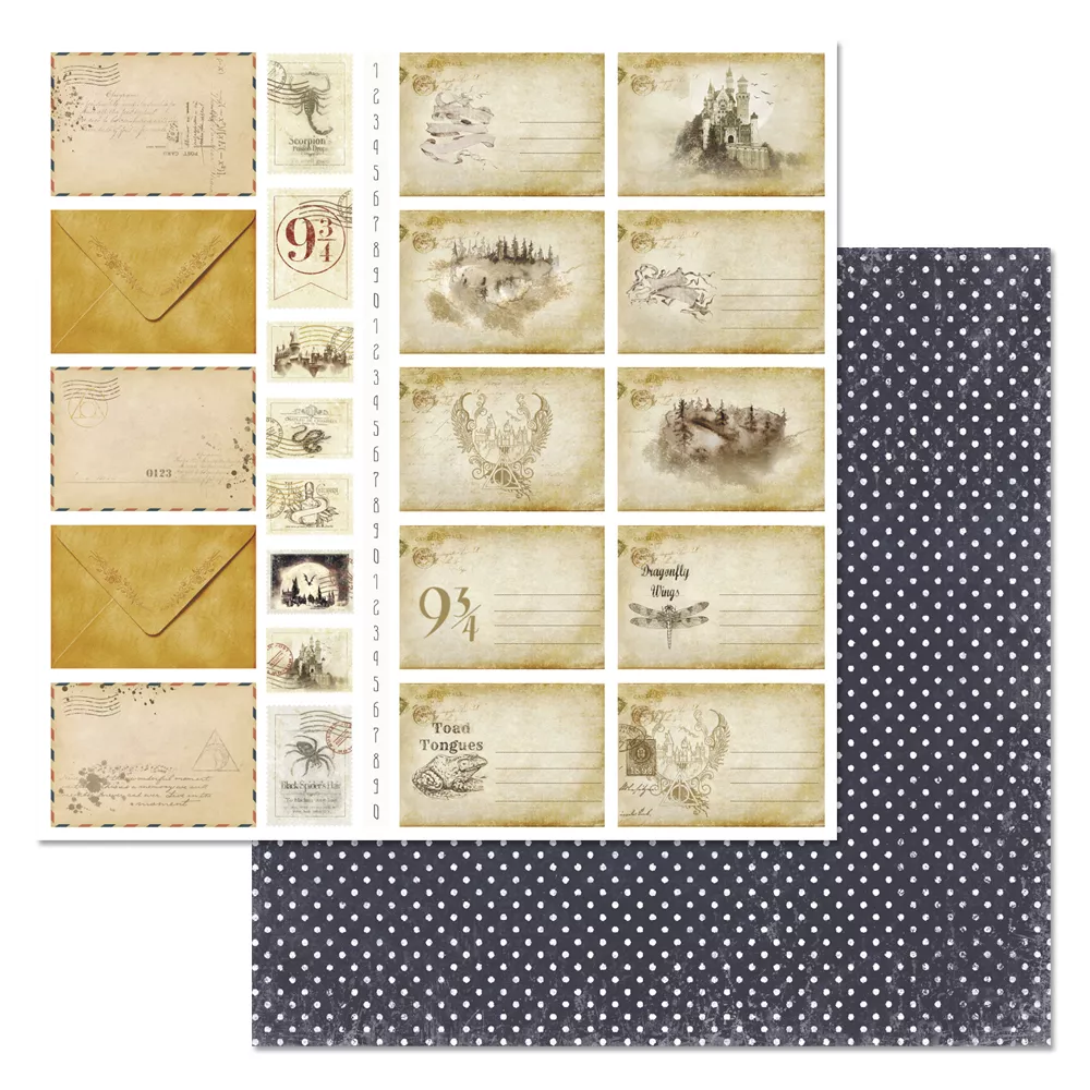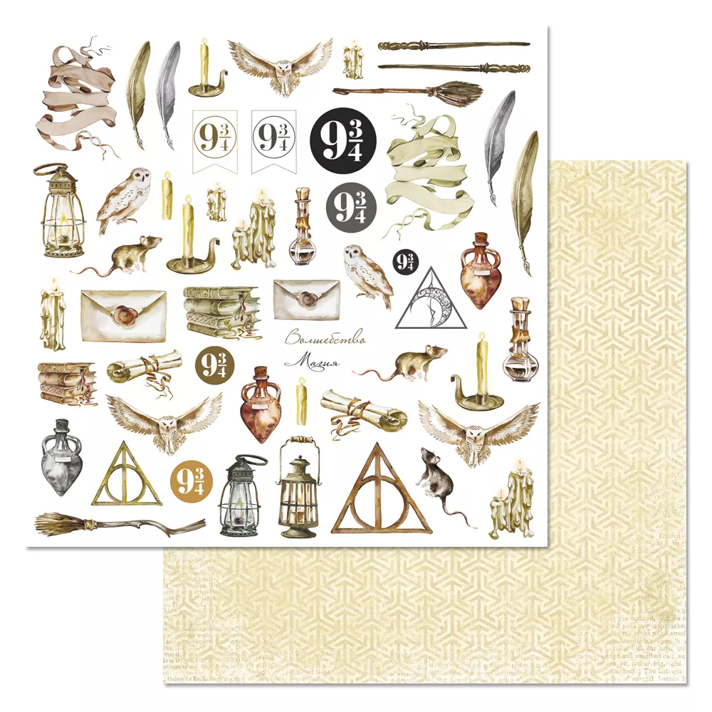 В наборе 12 двусторонних листов разного дизайна, в том числе 3 листа с карточками и картинками для вырезания. Плотность 180 гр/м2. Школа магии открывает свои двери всех повелителей волшебных палочек. Коллекция создана с настроением удивительных историй. Кто знает, что таится за очередным поворотом лестничного марша... Здесь на темно-бежевых страницах гримуара можно найти самые секретные заклинания. А глубоком серебристом тумане отыскать нужные ингредиенты для приготовления оборотного зелья или приворотного эликсира. Чудеса начинаются! И помните, палочка сама выбирает мага...
