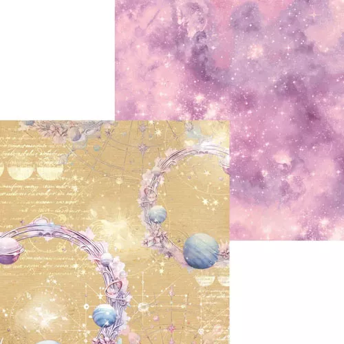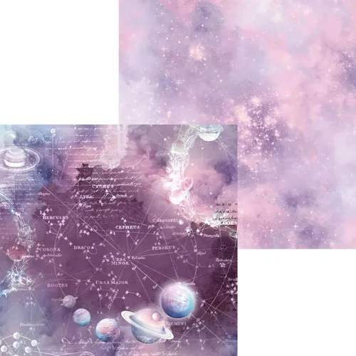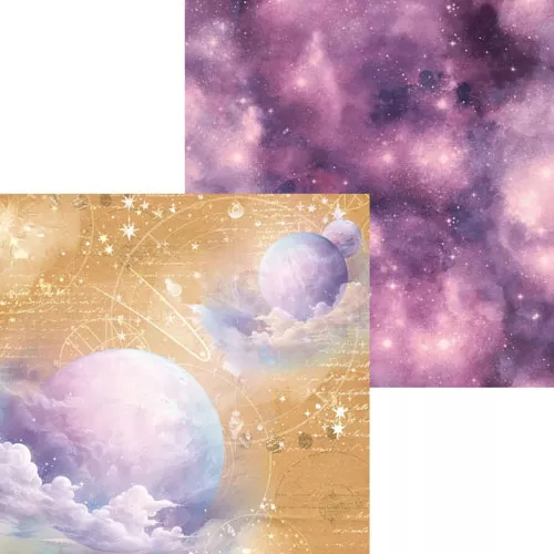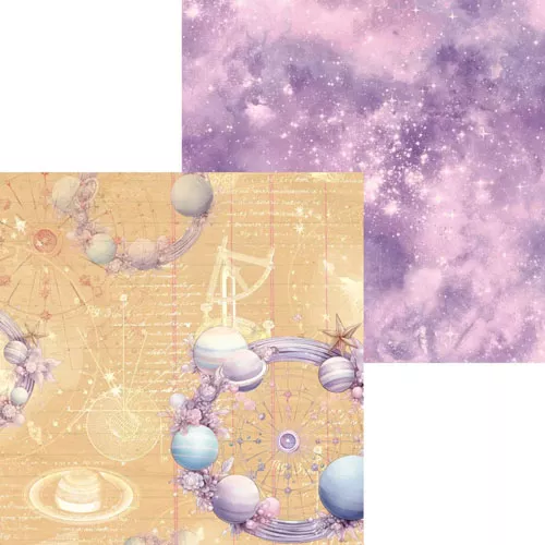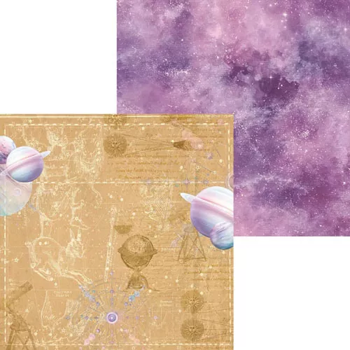 В наборе 7 двусторонних листов разного дизайна и 1 лист с элементами для вырезания на обороте обложки. Плотность 190 гр/м2. Коллекция, которая увлекает за собой в дальние путешествия по самым потаенным уголкам вселенной. Мягкий и теплый, как летний песок, но при этом очень насыщенный бежевый цвет шикарно гармонирует с восторженным сиреневым и сказочными космическими фонами