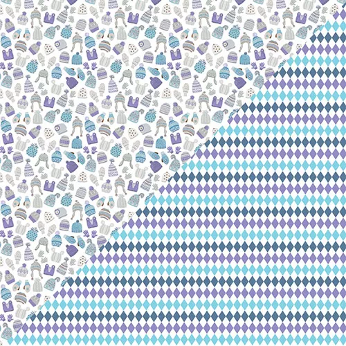 В наборе 18 листов двусторонней бумаги (по 3 листа каждого дизайна). Плотность около 180 гр/м2. Чудесная подборка фоновых принтов дополнена листами с очаровательными карточками про зиму. Коллекция выполнена в холодной фиолетово-голубой гамме. Часть листов довольно универсальна, использовать их можно не только в зимних работах