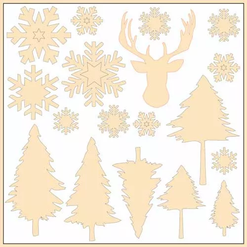 В наборе 12 листов, каждого дизайна по 2 листа, лист 30х30 см с ярлычками, лист с высечками из бумаги, лист с наклейками (рамочки для подписей), лист с наклейками - фразы на английском языке. Таинственный и необыкновенный набор. Несмотря на зимнюю тематику - он универсален. Подойдет для мужских работ и работ в стиле
