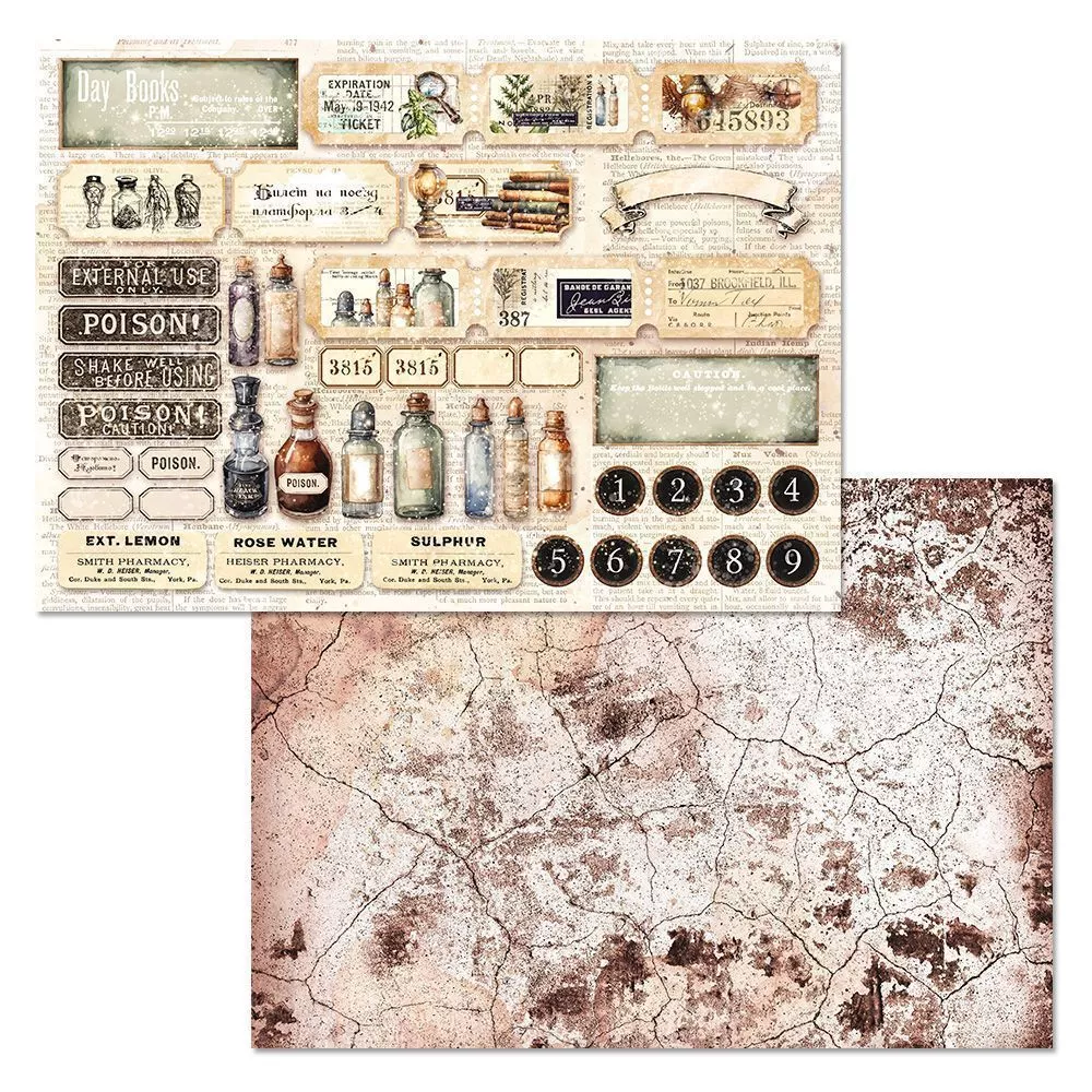 В наборе 6 двусторонних листов фоновых дизайнов, 4 двусторонних листа с картинками для вырезания, 1 двусторонний лист с карточками и 1 односторонний листа с картинками для вырезания (обложка). Плотность 180 гр/м2. Джанк серия идеально подходит для создания блокнотов. Дизайн 6 листов расположен таким образом, что вам остается только пробиговать листы посередине и сшить их, дополнив их карточками, картинками для вырезания и личными заметками. Мир магии и волшебства совсем рядом