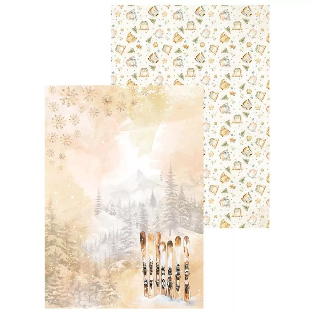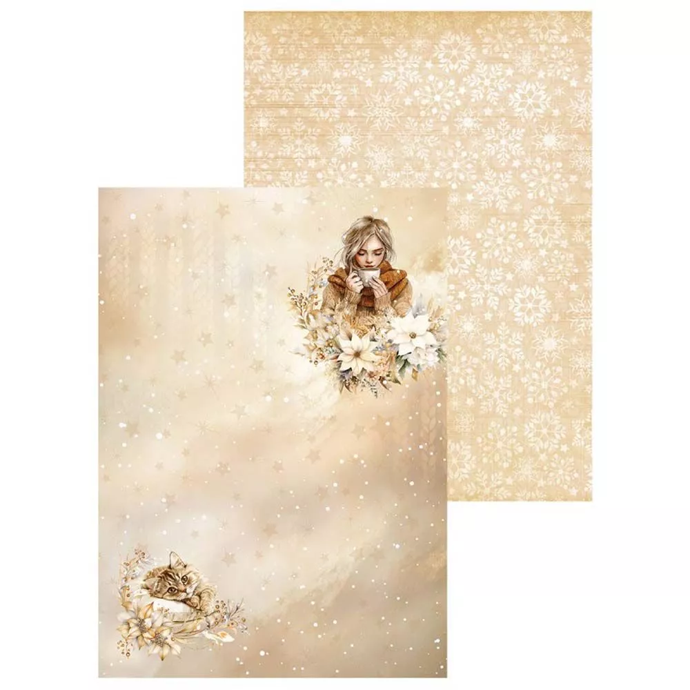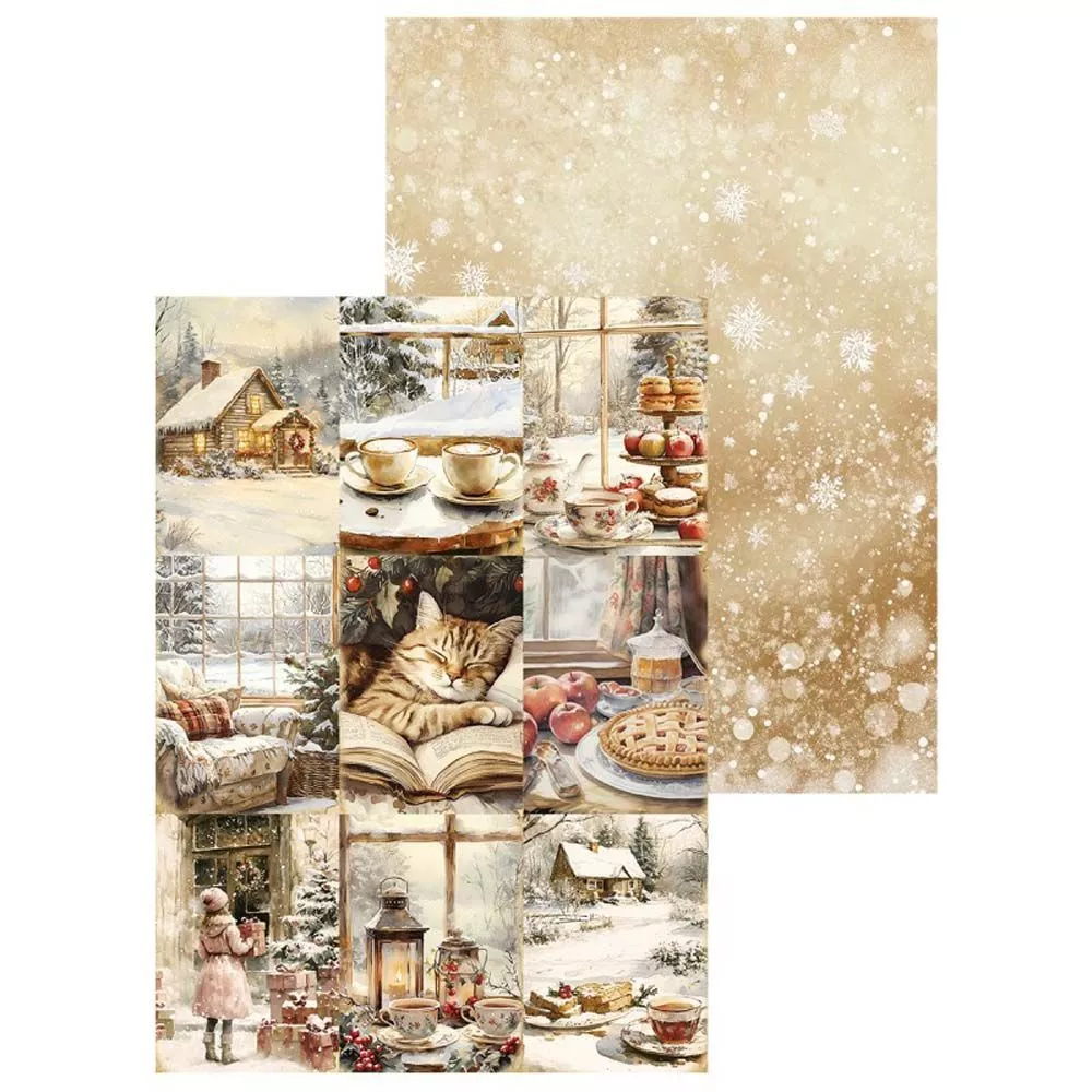 В наборе 7 двусторонних фоновых листов разного дизайна и 2 листа с надписями и картинками для вырезания. Плотность 190 гр/м2. Дополнительный бонус - картинки на обратной стороне обложки. Такая уютная и по-домашнему мягкая коллекция. С теплым пледом, горячим шоколадом и согревающим камином