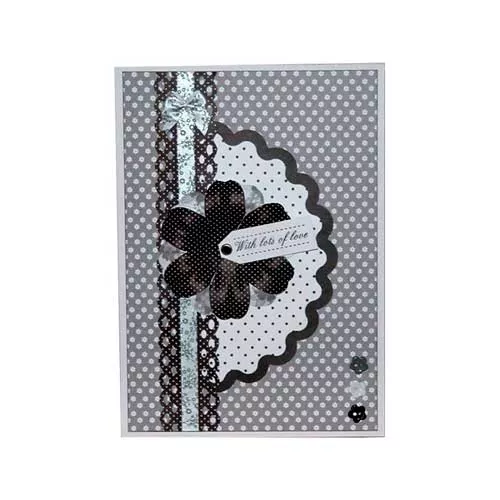В наборе 18 листов 10,2х15,3 см с фигурным краем. Каждого дизайна по 3 листа. На некоторые нанесены блестки