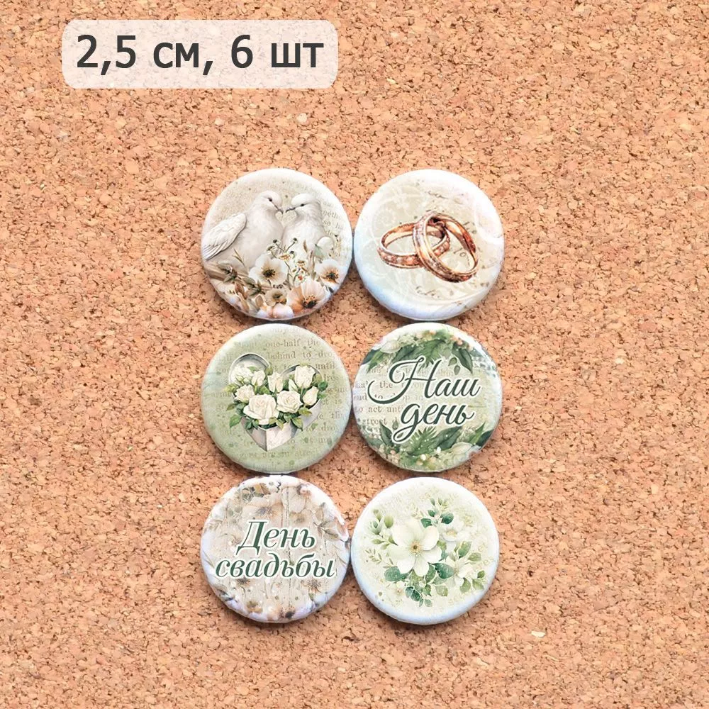 В наборе 6 глянцевых фишек, диаметр 2,5 см. Без клеевой основы. Уникальный дизайн, разработано специально для Вашего вдохновения
