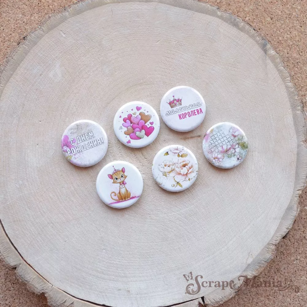 В наборе 6 глянцевых фишек, диаметр 2,5 см. Без клеевой основы. Уникальный дизайн, разработано специально для Вашего вдохновения