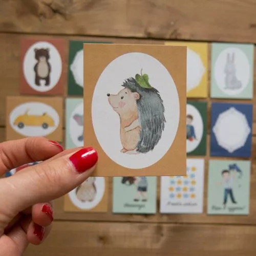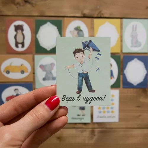 В наборе 15 карточек, размер 5,5х7 см. Плотность бумаги 190 гр/м2
