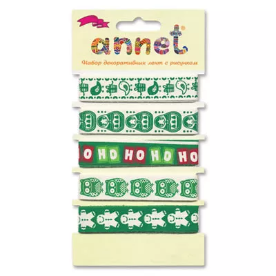 В наборе 5 лент с различными рисунками. Ширина 1,5 см, длина по 1 м