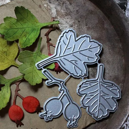 В наборе 3 ножа. Размер большого листика 5х3,5 см, маленького - 4х3 см, ягод - 4,5х2,5 см. Линии на лепестках - это прожилки (тиснение). Специальный инструмент не требуется, тиснение происходит одновременно с вырубкой