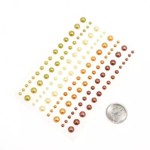 В наборе 120 полужемчужин на клеевой основе, диаметр от 0,3 до 0,5 см