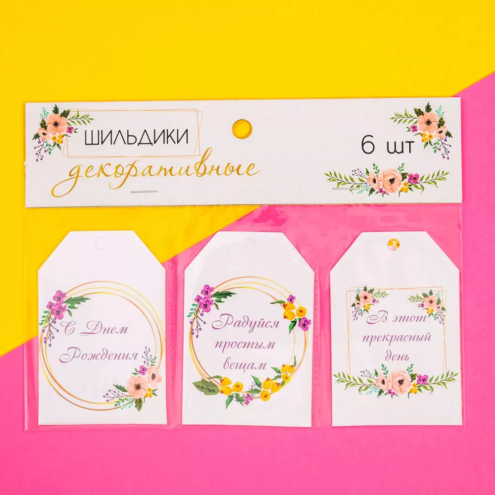 В наборе 6 шильдиков (ярлычков) размером 6х9 см и с отверстием для ленточки