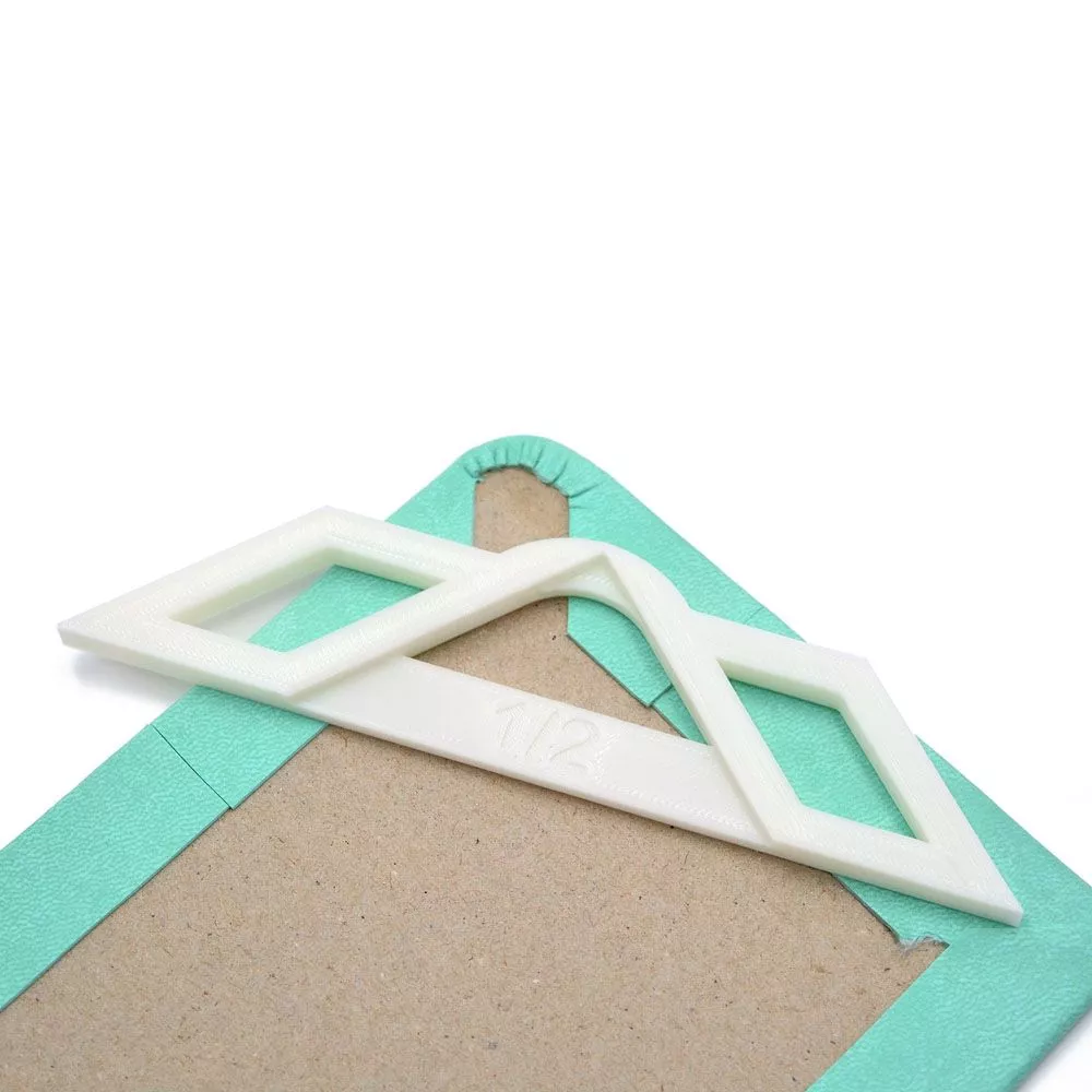 Набор уголков для скругления является инструментом для рукоделия и предназначен для создания красивого скругленного угла изделия и формирования переплетного материала для дальнейшего обтягивания угла. В набор входят два уголка на 1/2 и 1/4 дюйма , они имеют в основании оптимальную дугу, которую удобно натягивать на скругленный край. Рекомендовано использование переплётного картона толщиной 2,5 мм и кожзама средней толщины. Набор выполнен при помощи 3Д печати из экологичного пластика. Прослужит долгие годы