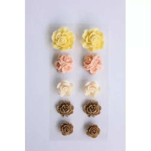 В наборе 10 цветочков на клеевой основе, диаметр от 1,5 до 2,5 см