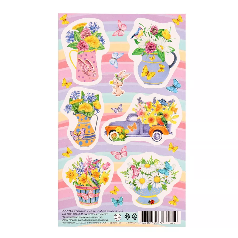Наклейки 10х16 см "Весна. Кувшин, цветы, машина"