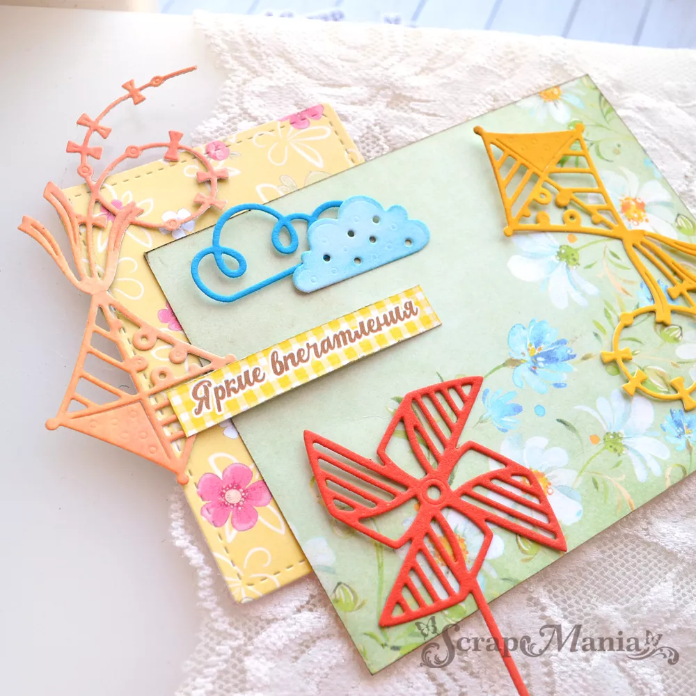 В наборе 4 ножа, соединенных перемычкой, которую при необходимости можно перекусить. Общий размер ножа 8,4х8,3 см. Сочетайте с ножом "Детское счастье. Ветерок" (арт. 241771). Размер змея 4,4х8,8 см, размер облаков 1,6х3,2 см, 1,8х3,9 см и 2,1х5,5 см. Прекрасное дополнение к любым детским работам и идеально подойдут для создания поздравительных открыток