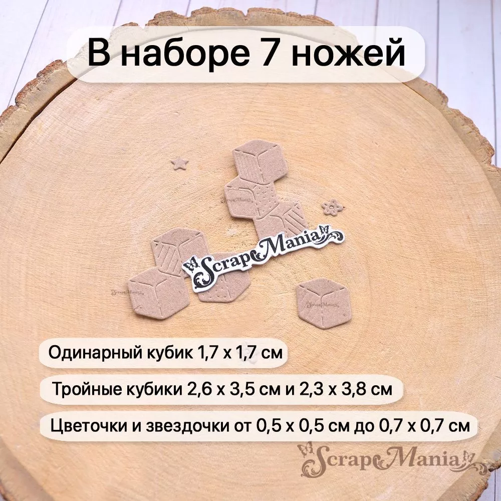 В наборе 7 ножей, соединенных перемычкой, которую при необходимости можно перекусить. Общий размер ножа 5,4х5,6 см. Размер кубиков 1,7х1,7 см, 2,6х3,5 см и 2,3х3,8 см, деталей от 0,5х0,5 см до 0,7х0,7 см. Идеальное дополнение к детским работам. Чудесный нож-конструктор позволит Вам проявить невероятную фантазию в своих работах. Компонуйте, меняйте, переставляйте местами вырубку и создавайте свой невероятный дизайн. Отлично сочетается с другими ножами из серии "Детство" (арт 255654, 255649 и др)