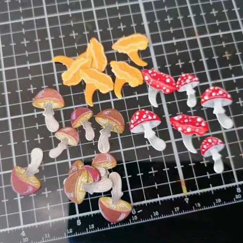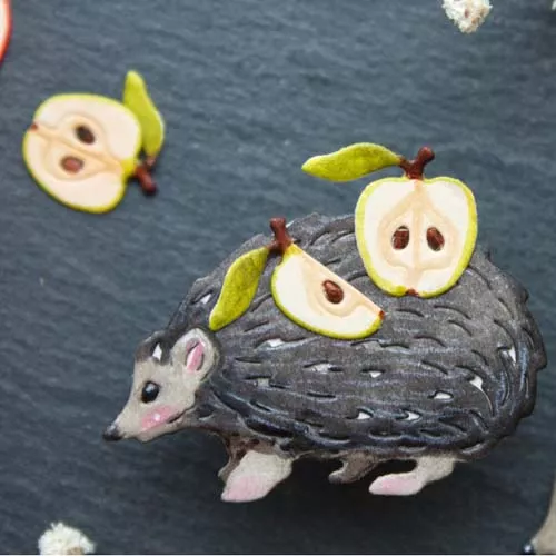 В наборе 3 ножа. Размер ежика 4х2,7 см, яблока - 1,7х1,4 см, размер пластины с грибами - 4х2,4