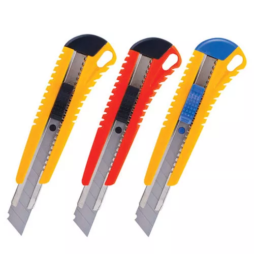 Универсальный нож для резки с выдвижным лезвием. Размер ножа 4,5х16 см, ширина лезвия 1,8 см, толщина 0,5 мм. Нож оснащен автофиксатором для безопасной работы. В корпусе имеется отверстие для подвеса, что обеспечивает удобное хранение. В комплекте 2 сменных лезвия. Цвет корпуса может отличатся от представленного на фото