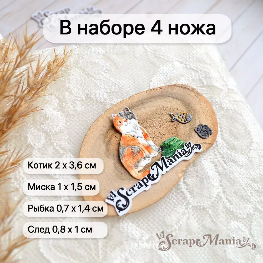 В наборе 4 ножа, соединенных перемычкой, которую при необходимости можно перекусить. Общий размер 3,4х3,6 см. Размер котика 2х3,6 см, миски 1х1,5 см, рыбки 0,7х1,4 см и следа 0,8х1 см. "Я все съел! Я самый голодный кот в мире! Хозяйка, корми меня скорее!" - забавный котик прекрасно впишется в вашу работу. Дополняйте композицию ножами из серии "Котики" (арт. 257197, 257198, 257199 и т.д. )