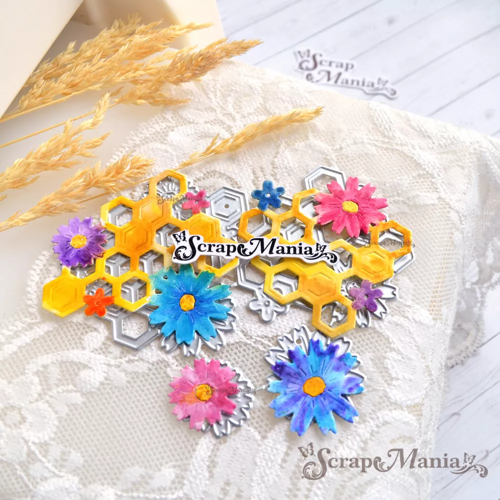 В наборе 4 ножа, соединенных перемычкой, которую при необходимости можно перекусить. Общий размер ножа 9,2х9,7 см. Размер сот 6х6 см и 5х5,5 см, цветочков 2,7х2,7 см и 2х2 см. Нож отлично подойдет для создания декора к летним страничкам, праздничным открыткам и кулинарным блокнотам. Отлично сочетается с ножами из серии "Пчелиные истории" арт. 242606, 242607, 242608 и 242609
