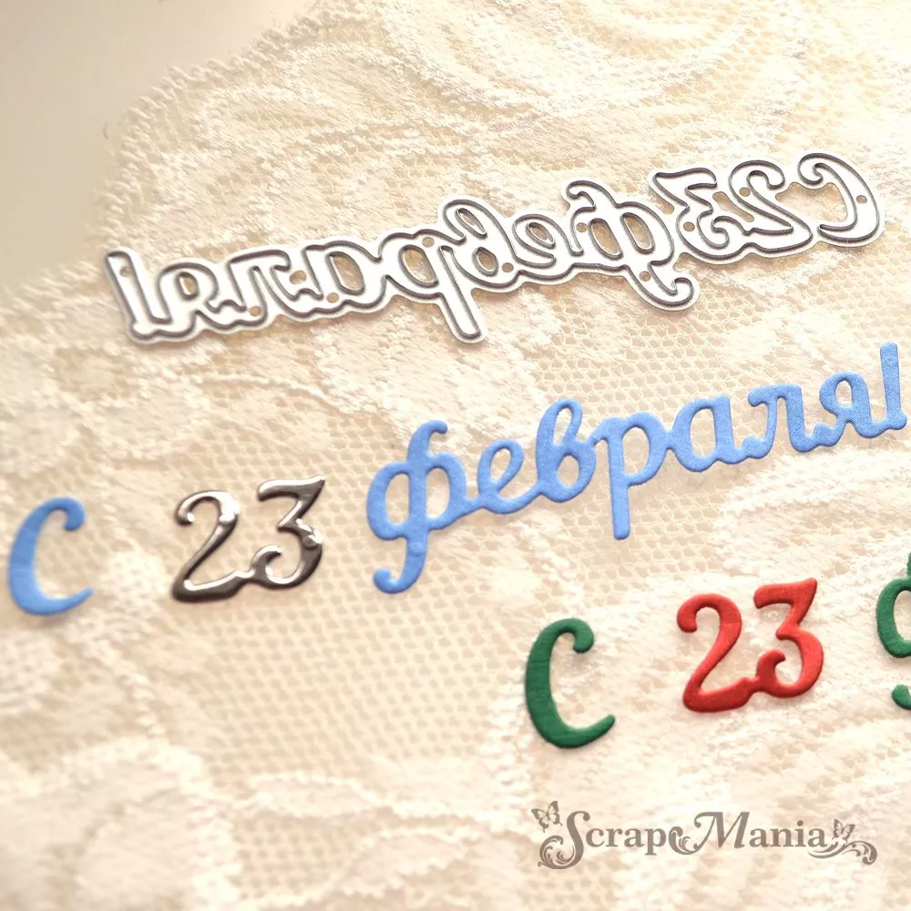 Размер 8х2 см. Нож вырубает 3 слова