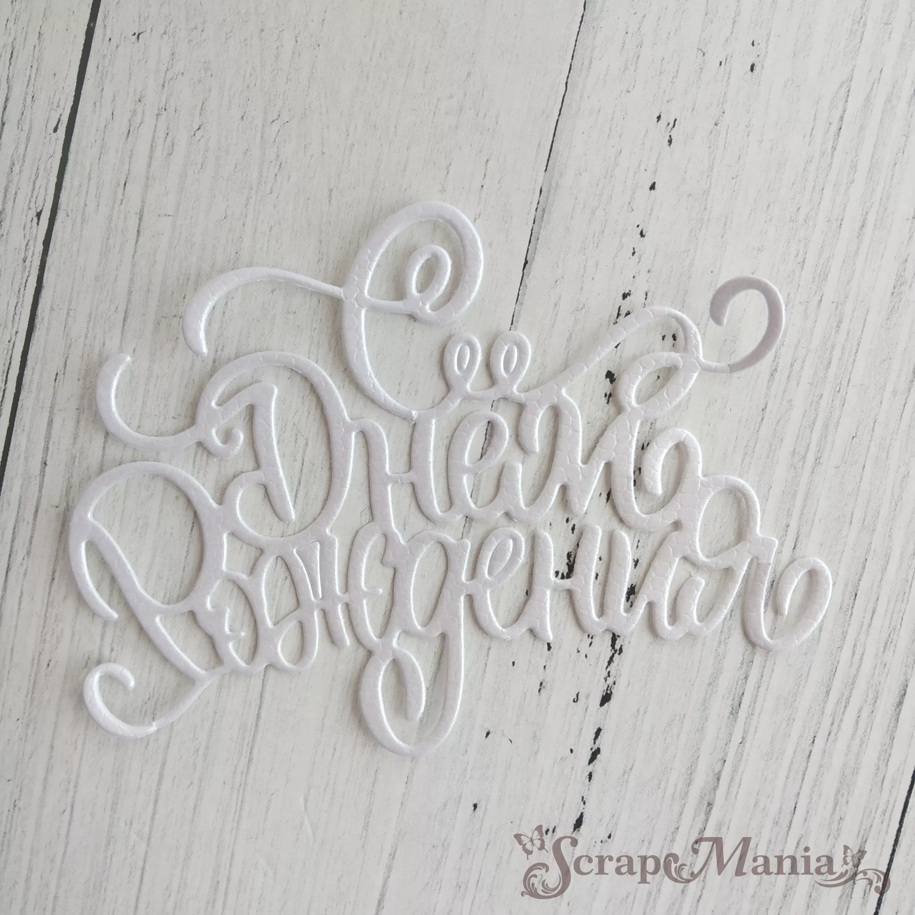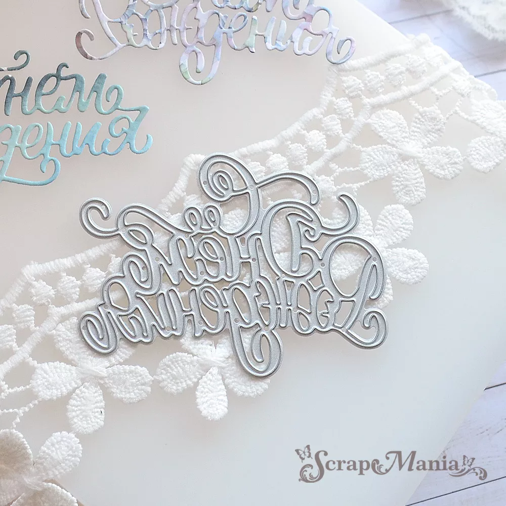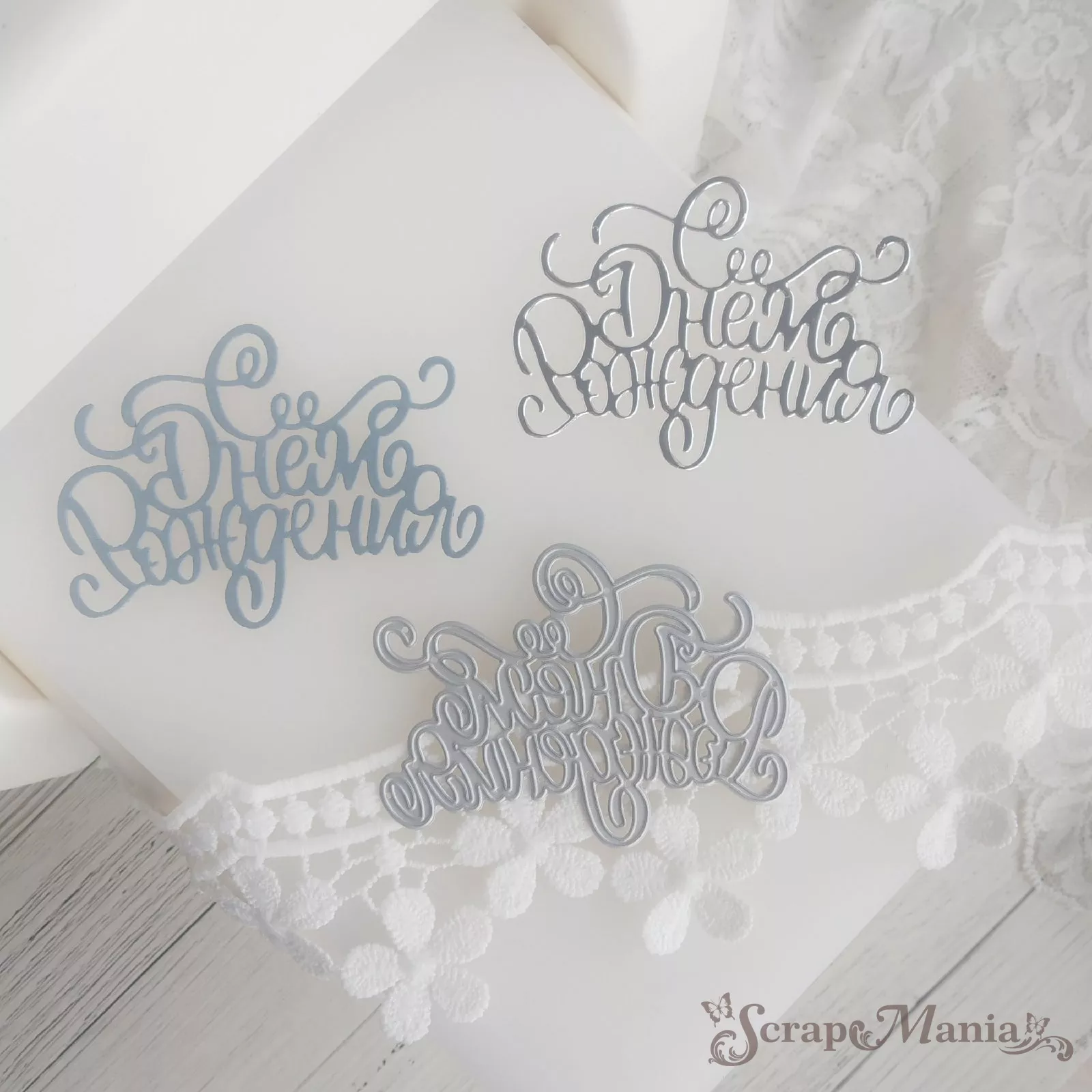 Красивая надпись с праздничными завитками отлично подойдет для оформления открыток, конвертов и коробочек. Вырубка имеет самый оптимальный размер, чаще всего используемый в скрапе - 8,2х6,1 см