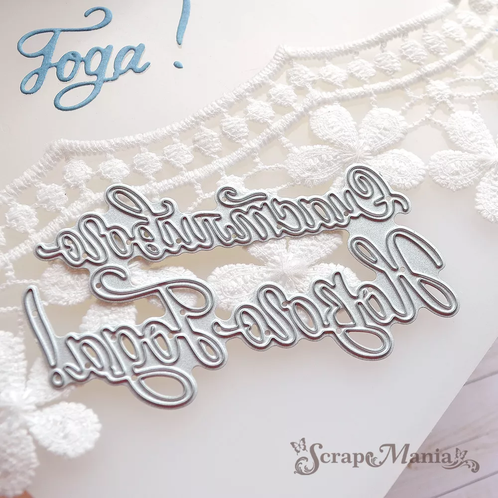 Красивая надпись с праздничными завитками отлично подойдет для оформления открыток, конвертов и коробочек. Нож вырубает 3 отдельных слова и восклицательный знак. Размер слова "Счастливого" - 7,7х2 см, слова "Нового" - 5х2,5 см и слова "года" - 3х3 см. Размер ножа 8х4 см