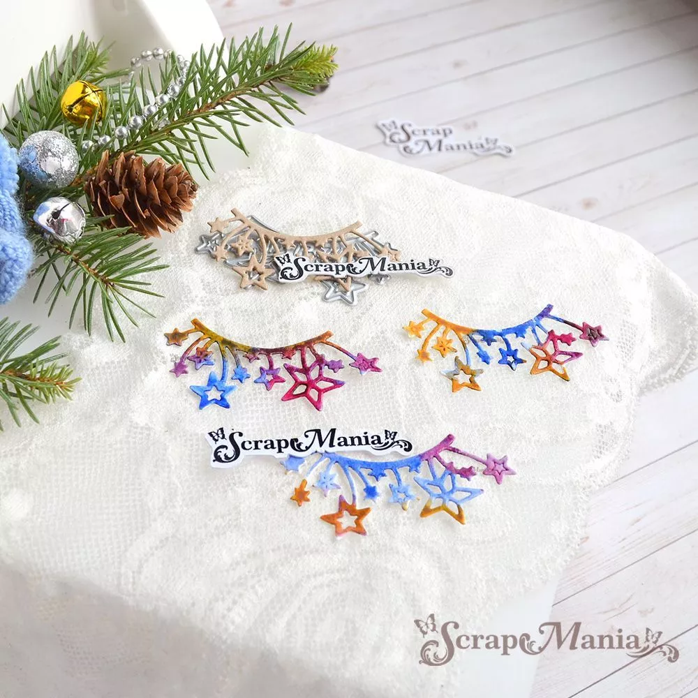 Размер 3х5,7 см. Вырубку можно использовать как отдельную деталь, так и для создания круглой рамки. Для этого сделайте 4 вырубки и склейте их между собой. Размер готового круга 6,1х6,4 см, внутренний диаметр 3,5 см. Украшение прекрасно дополнит новогодние, зимние и сказочные работы. Творите волшебство своими руками